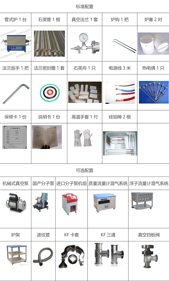 主機(jī)1臺,密封法蘭1套,“O”型圈4個,剛玉管1根,管堵4個,坩堝鉤1把, 說明書、合格證、保修卡各1份 |